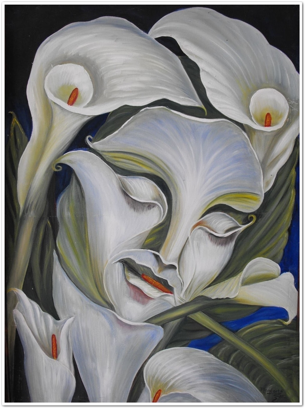 꽃은 얼굴이 되고 산은 서로 말을 하고 있고 관 위에서 애도하는 이는 그리스도가 되기도 합니다.