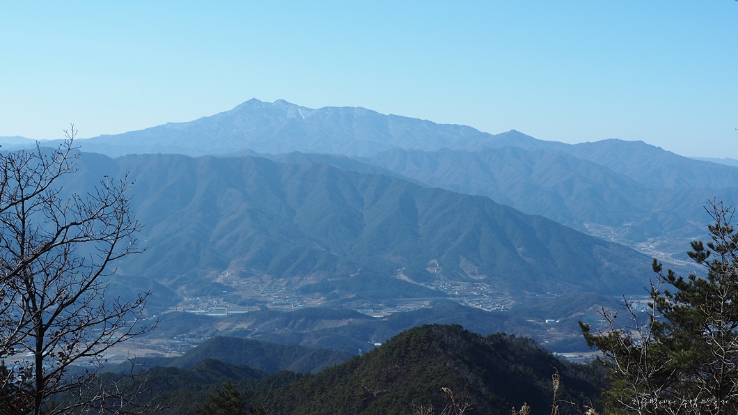 우측으로는 거창의 산군들이 보이고 남덕유와 황적봉이 희미하게 보입니다.