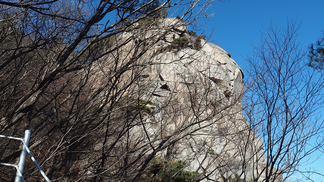 나무 사이로 보이는 새신바위