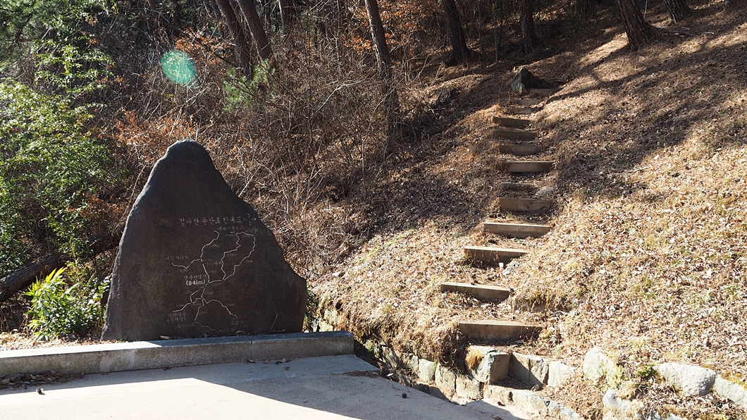 절 아래 2단으로 주차장이 마련되어 있는데 위의 주차장 좌측에 등산로 입구가 있습니다.