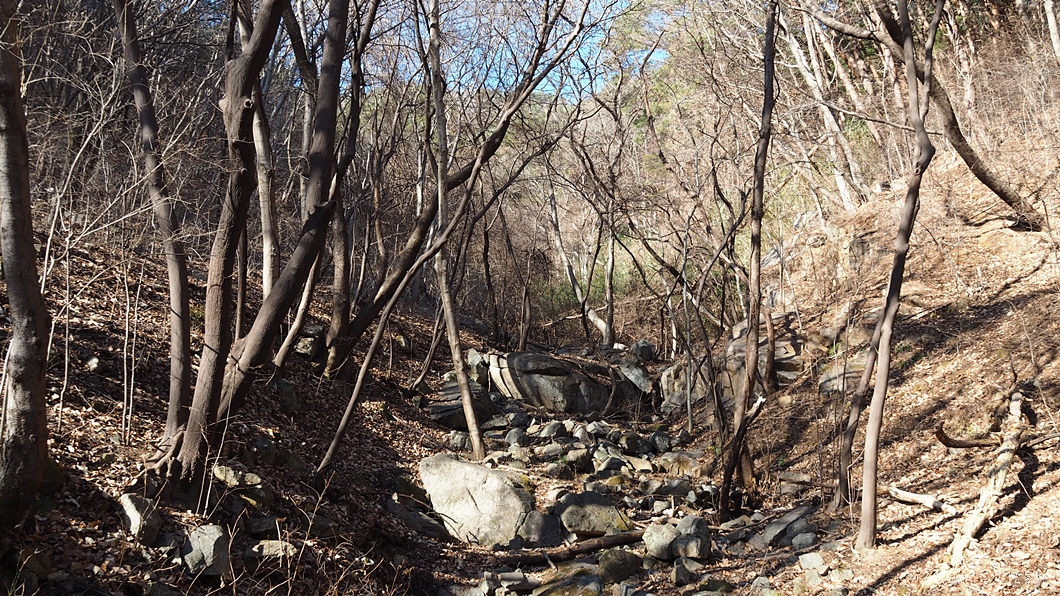 계류를 건너고 산길은 적당한 비탈을 타고 올라가게 되고요.