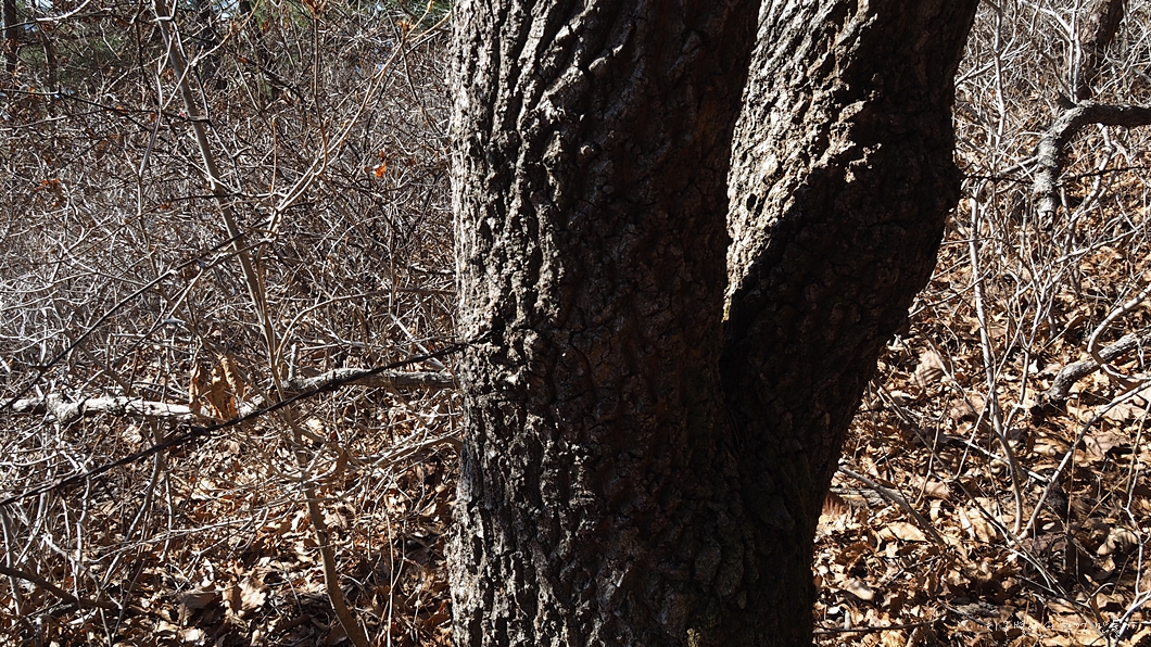 좌측으로 오래전에 뭘 심었는지 설치해 둔 철조망을 참나무들이 모두 먹어 버렸네요.