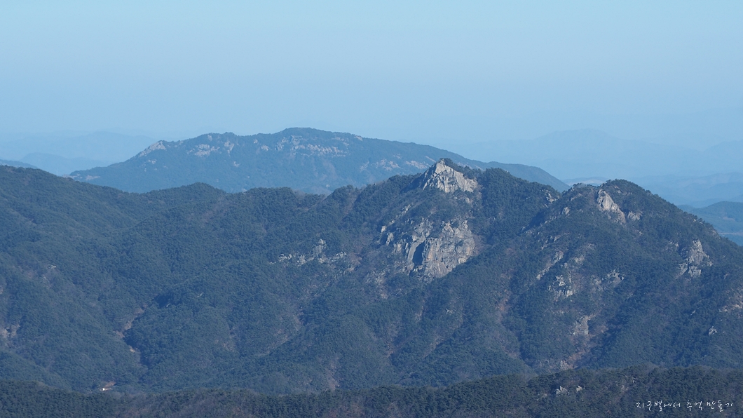 지리산과 우측으로 필봉산, 왕산이 겹쳐 보이네요.