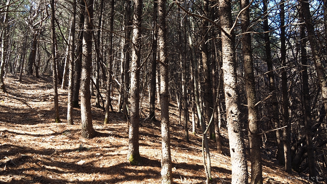 언젠가 산불이 났는지 자라고 있는 나무들의 수령이 모두 비슷하네요.