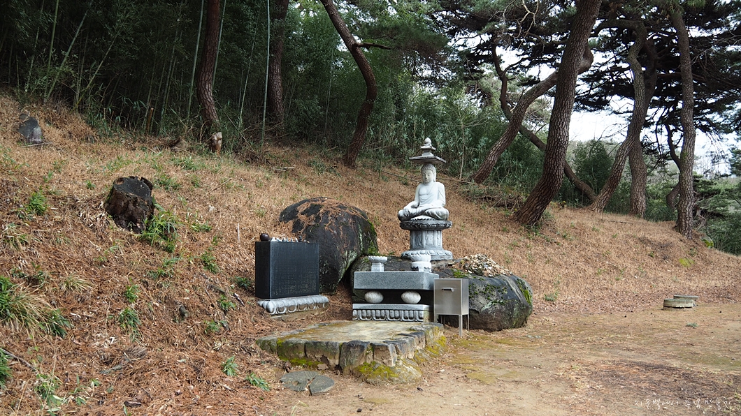 절 뒷편에는 관셈석불 하나가 조성되어 있는데 메이드 인 그라인드.