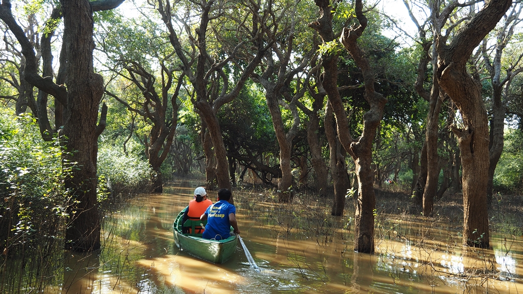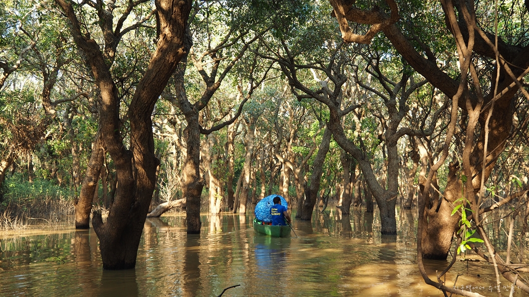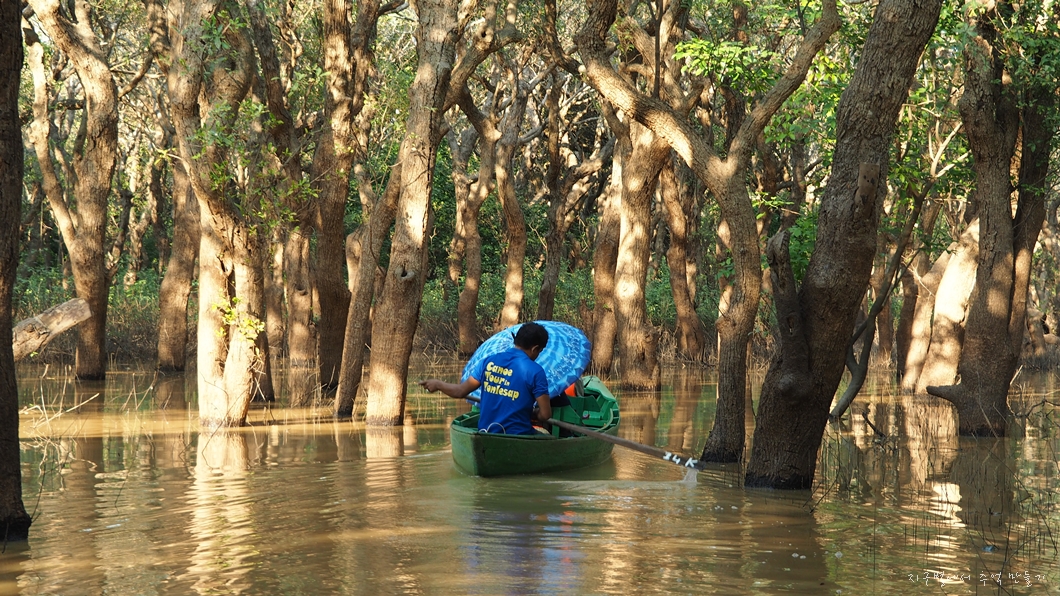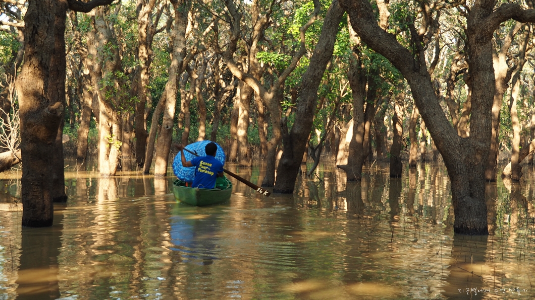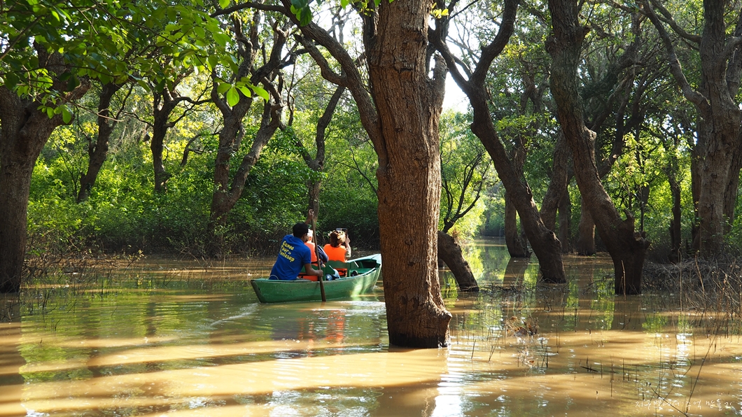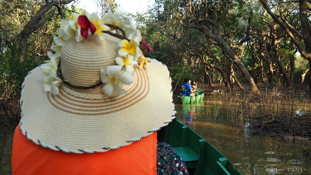 이곳을 캄퐁 플럭(Kampong Phluk) 마을이라고 하는데 쪽배, 또는 카누라고 하는 조그만 배를 타고 수상마을을 구경하거나 맹그로브 숲을 작은 배로 여행을 하게 됩니다.