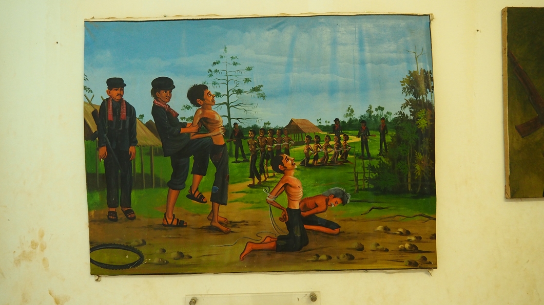 크메르 루주시절에 사형장이었던 이곳에서 발굴된 희생자의 유골을 안치하고 있고 '캄보디안 역사그림박물관'이라고 하여 그때 당했던 실제 장면들을 그림으로 보여주고 있네요.