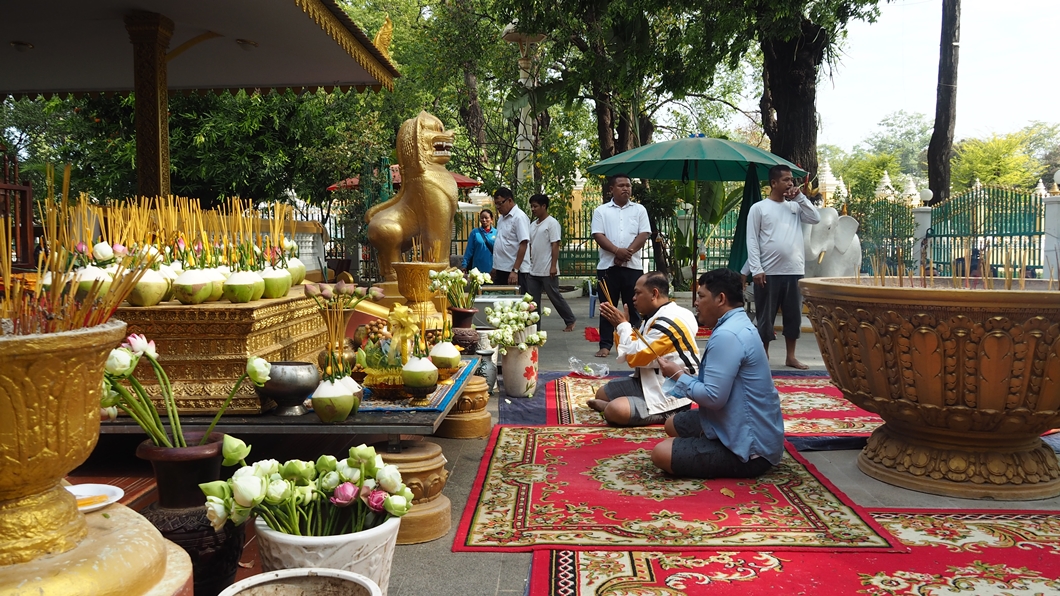 사원 안에 예배를 하면서 꽃을 올리고 있는 것인데 이게 .. 자세히 보니 부처님한테 올린 꽃은 수거를 싹 해서 이곳으로 다시 이동. 재활용을 하고 있네요.