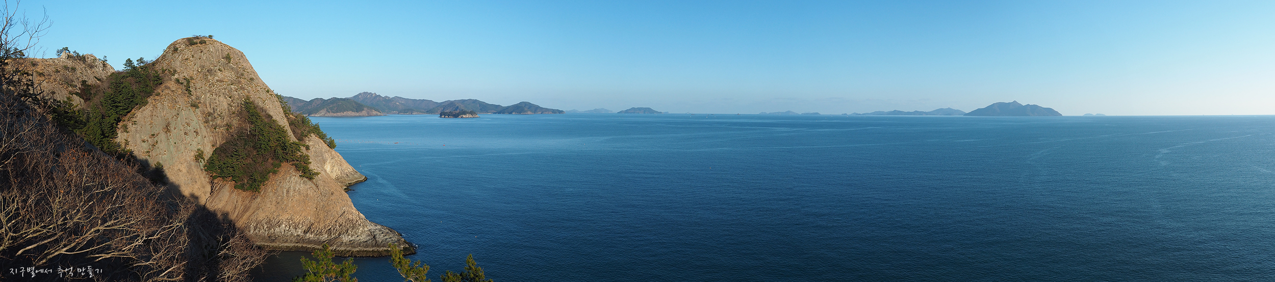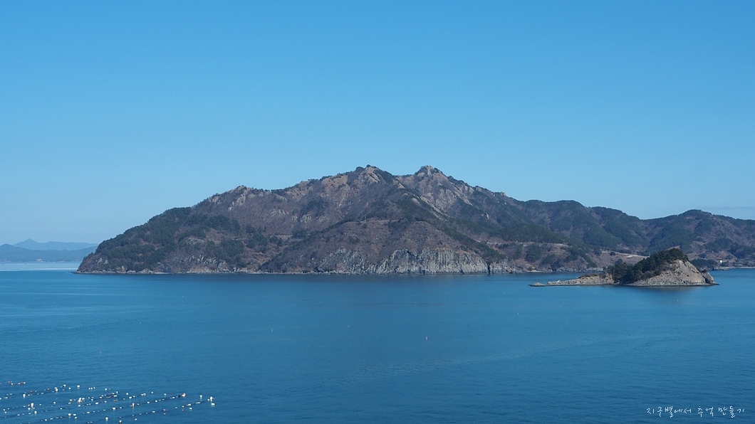 우측 가운데 있는 섬이 두미도이고 그 뒤로 욕지도입니다.