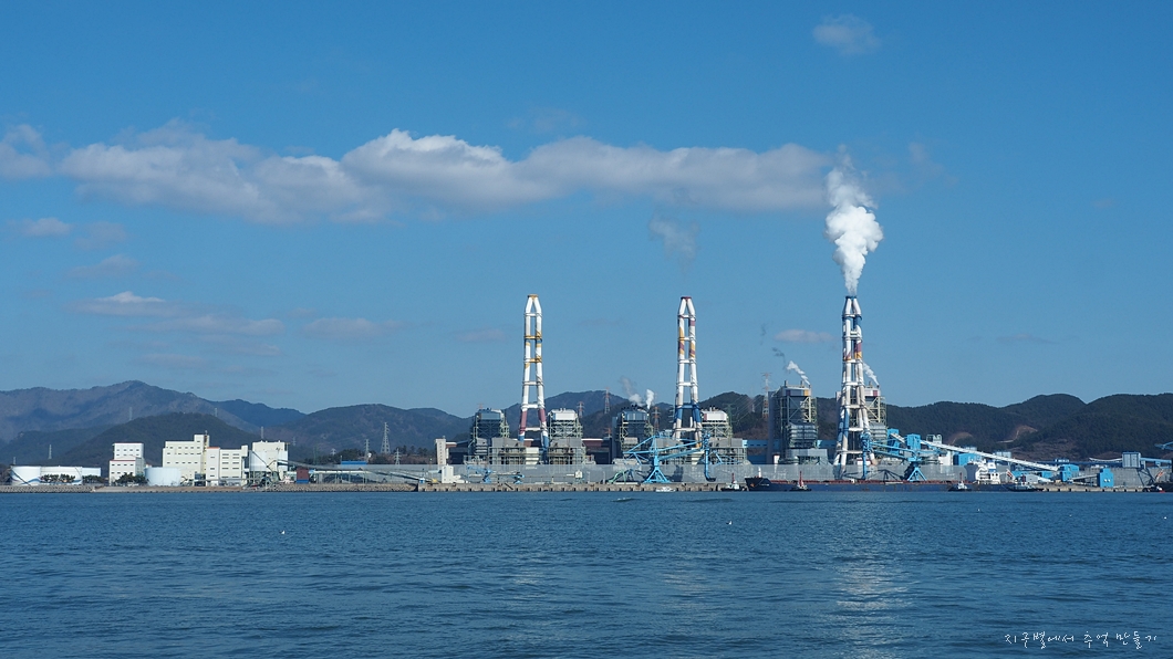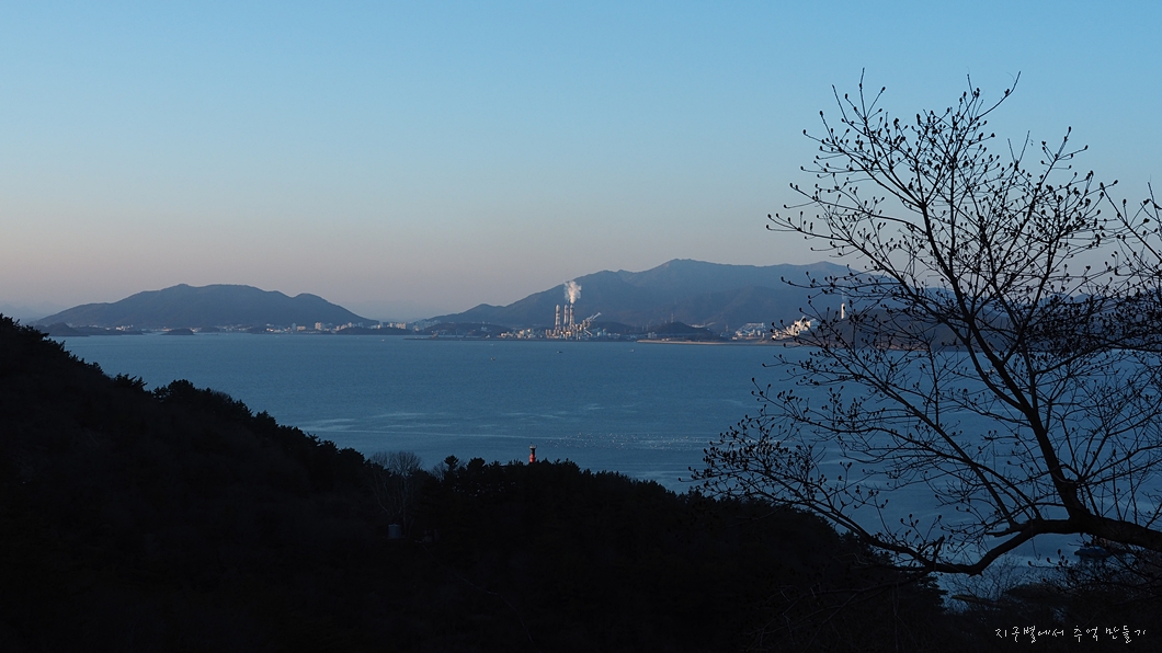 어둑해지고 있는 시간에 멀리 삼천포 발전소가 보입니다.