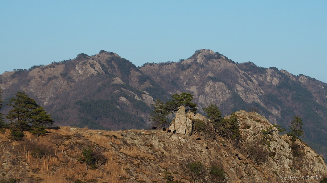 건너편 백두봉 능선에 뭔가 움직이길래 당겨보니 모두 염소들이네요.