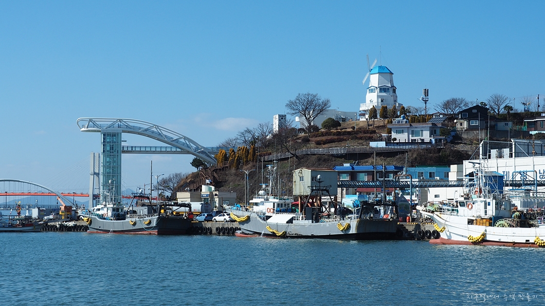 저기 뒤로 삼천포 각산이 있는데 의외로 멋진 산이었던 게 기억에 나네요.