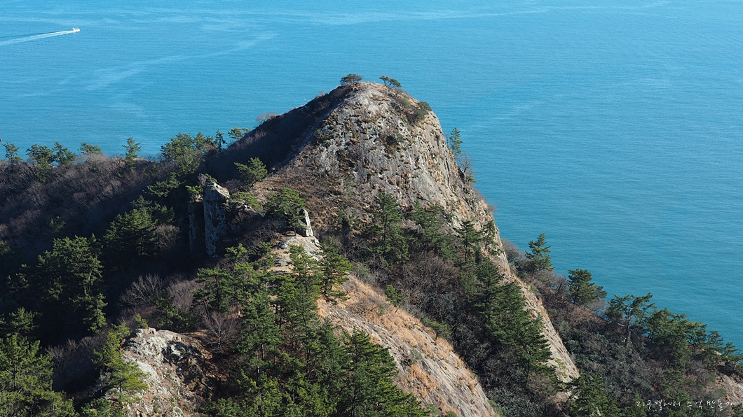 섬 좌측으로 백두봉이 보이고 그 아래 바다쪽이 해골바위입니다.