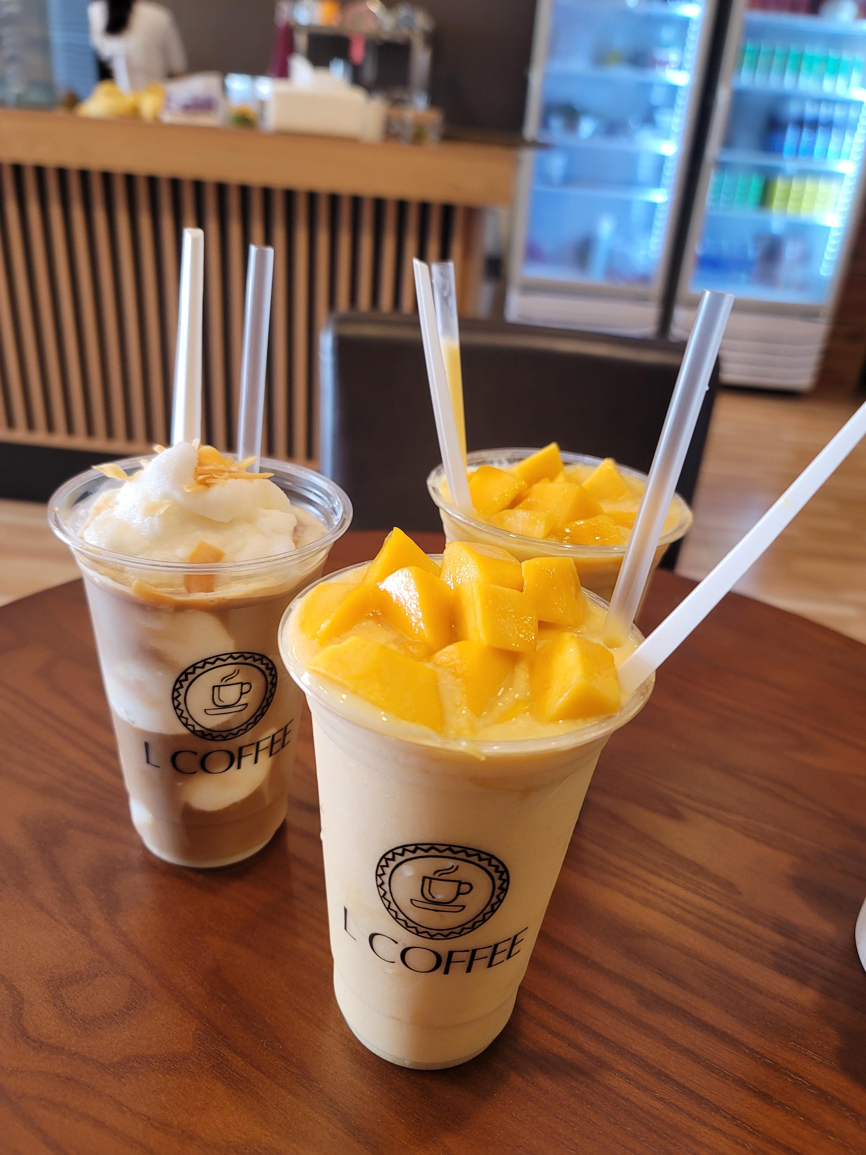 날씨가 아침부터 더워서 카페에서 망고 스무디와 코코넛 스무디등 시원한 음료를 마셨네요. 여행 내내 망고스무디를 마구...^^*