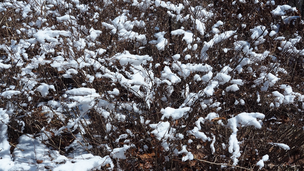 음지 양지에 따라 눈이 있다 없다를 반복하고요.