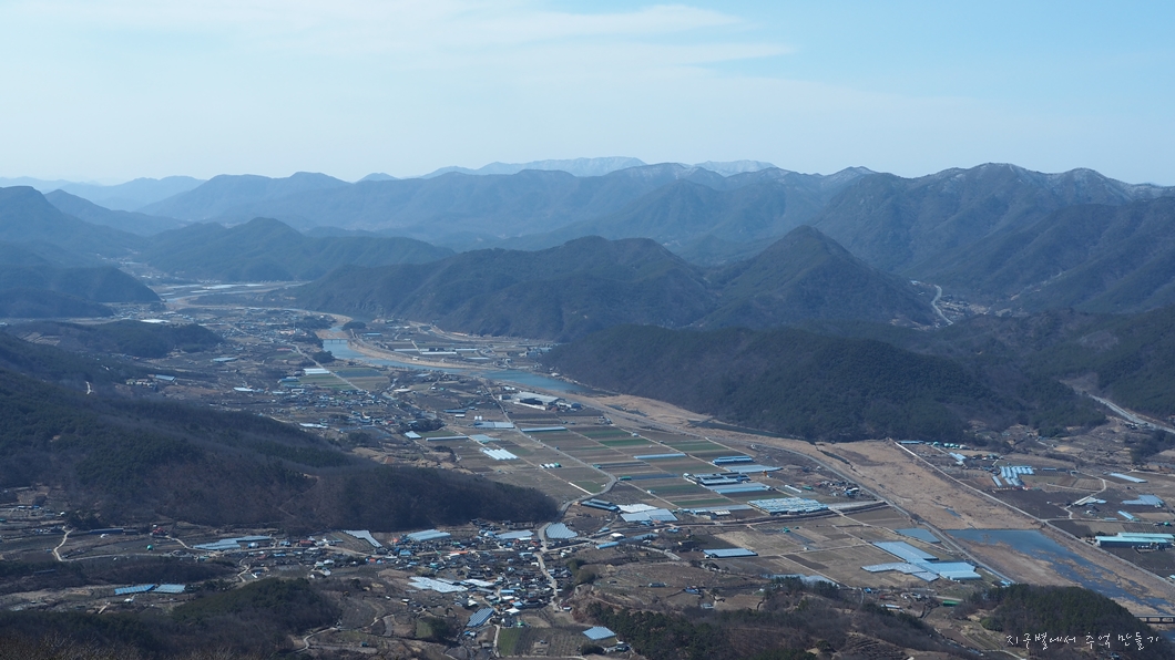 금천면의 널찍한 들판이 내려다 보이고 중앙 뒤로 멀리 보이는 산은 청도 남산도 화악산이 아닐까 짐작이 됩니다.