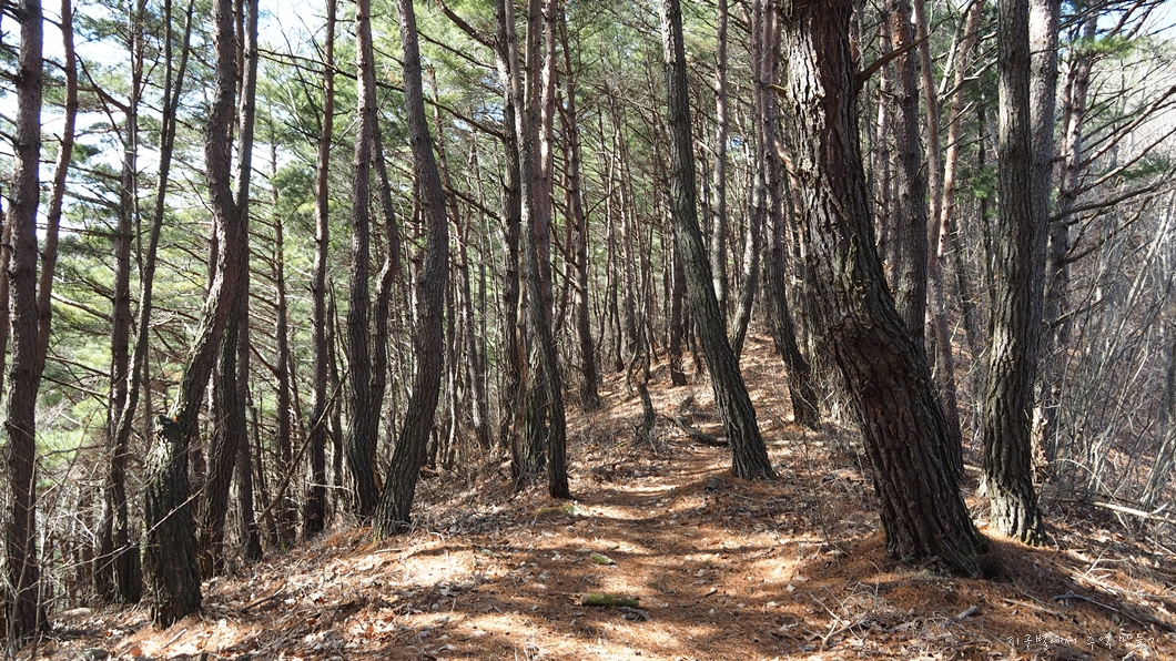 능선길에서는 나무들이 많아 조망이 거의 트이지 않는데 소나무 숲길이라 피톤치드 힐링으로 생각하면 되겠네요.