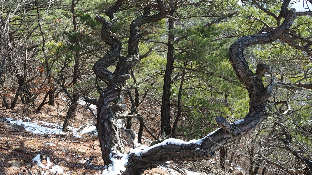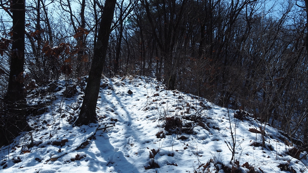 눈이 조금 쌓인 능선길을 느긋하게 걷습니다.