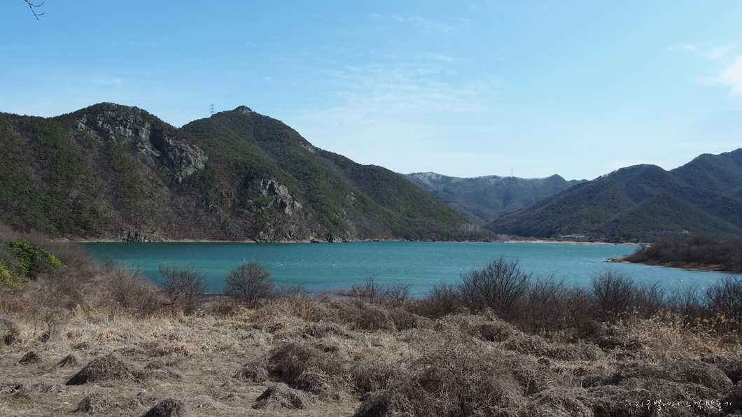 간혹 트이는 조망터에서 운문호를 감상하게 내려갑니다.