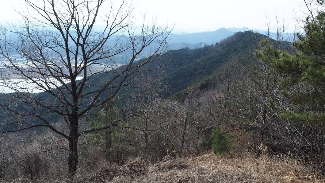 한쪽으로 가끔씩 트이는 낙동강 조망.