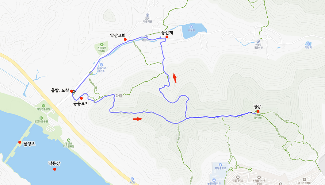 달성공단 쪽에서 곧장 오르면 정상까지 30여분 걸리는 곳이고 다른 어느 곳으로 올라도 2~3시간이면 산행이 충분합니다.