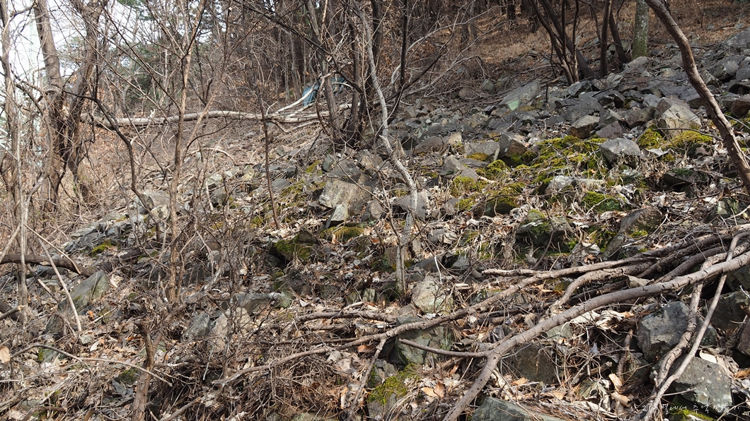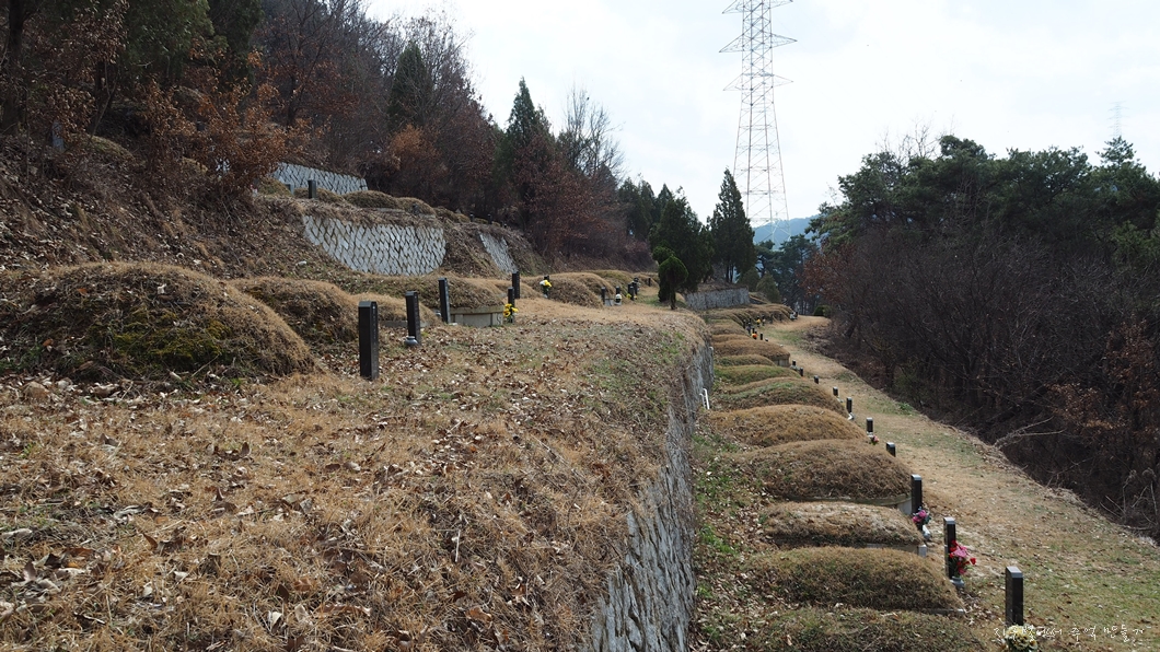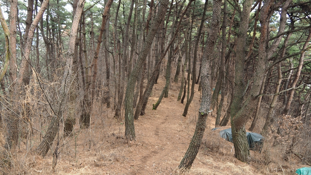 위 사진의 넓은 임도처럼 보이는 길은 바로 위에 있는 공동묘지에 가는 길.