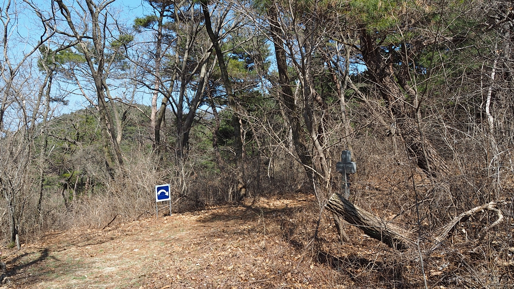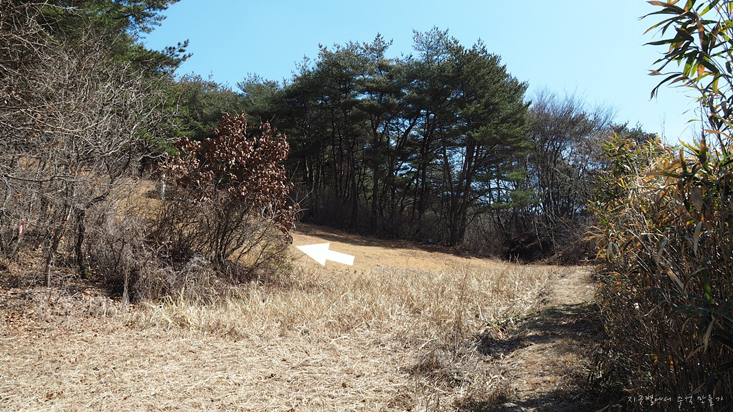 건너편 산길 쪽으로 조금 들어가면 커다란 산소가 보이는데 이 산소 좌측으로 올라가면 됩니다.