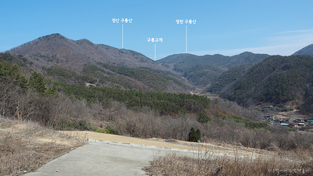 안내표시목에 구룡산이라고 표시된 방향이 영천 구룡산으로 가는 방향입니다.