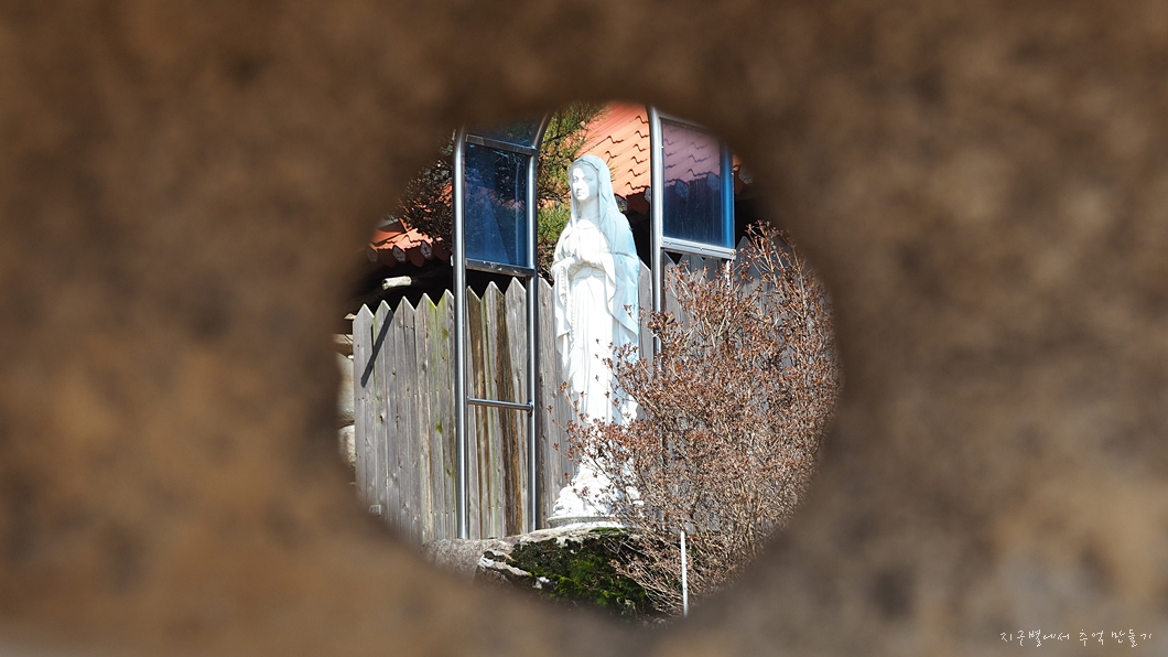 형구돌 구멍으로 보이는 성모 마리아.