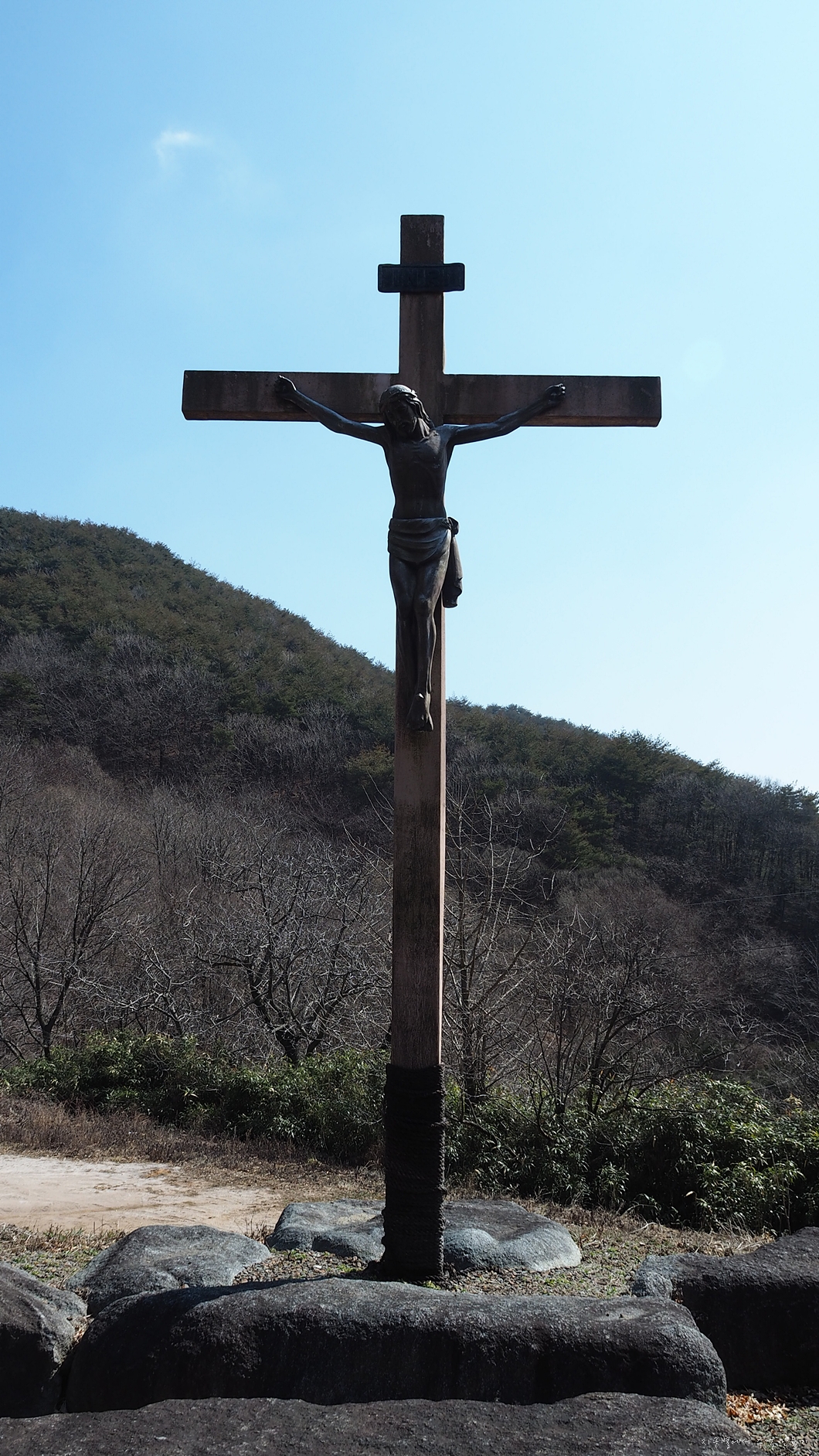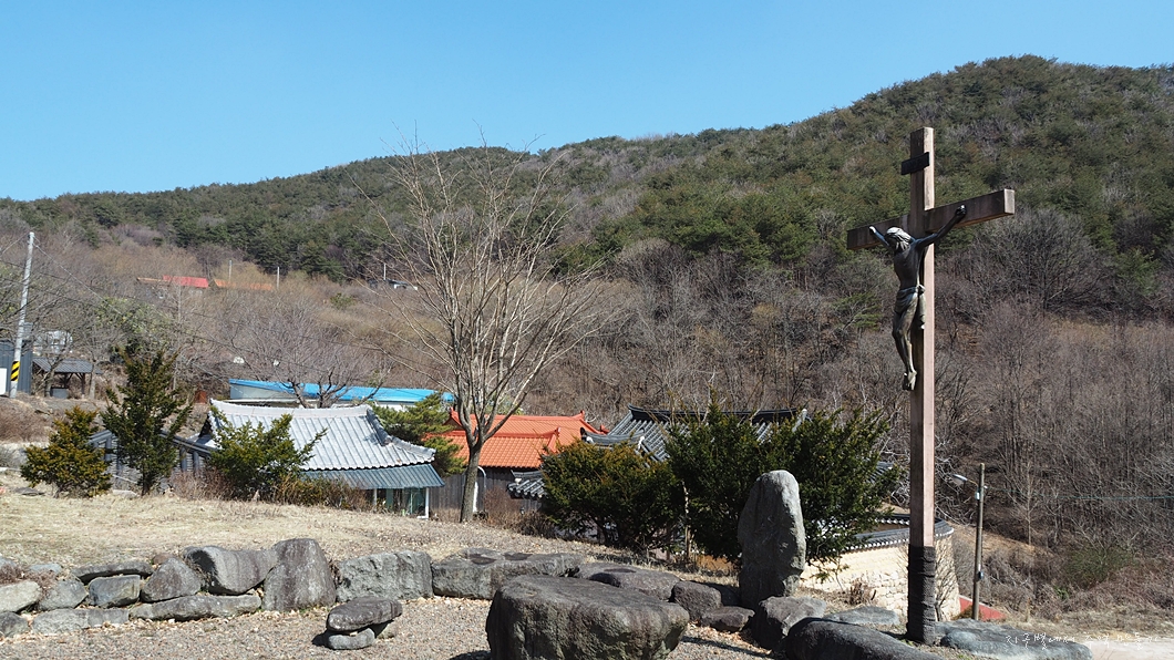 구룡공소 앞에는 십자가에 못 박혀 있는 예수상이 있습니다.
