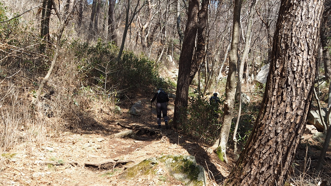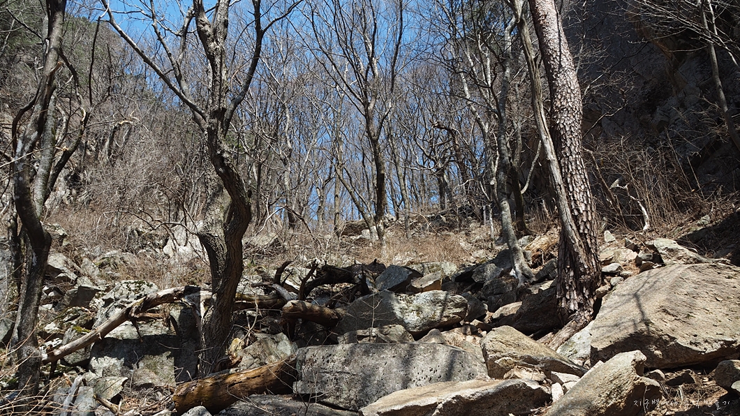 하산길은 아주 경사가 급하고 미끄럽습니다.