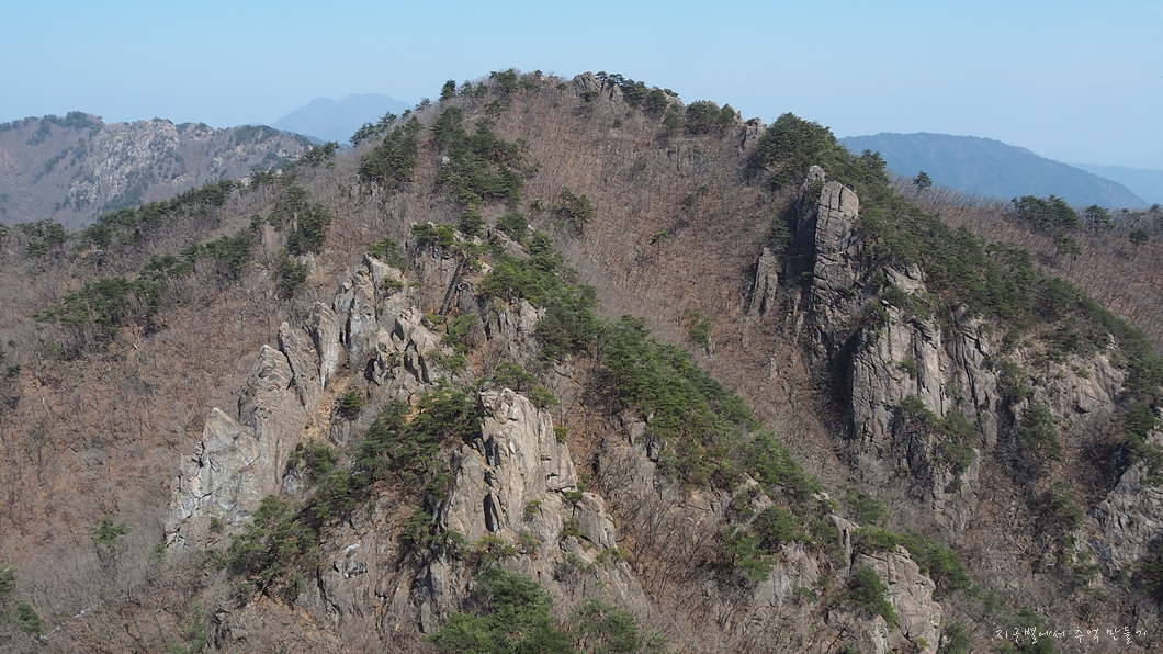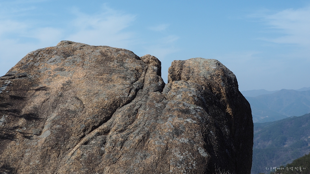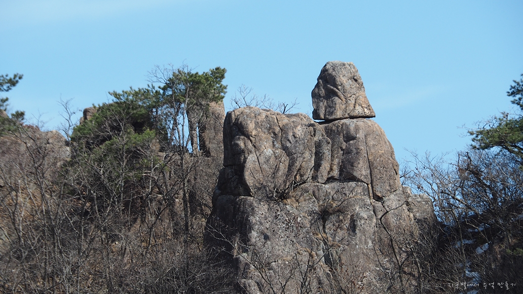 지남산으로 가는 능선에 서 있는 저 바위는 이름이 뭔지 모르겠는데 아주 특이합니다.