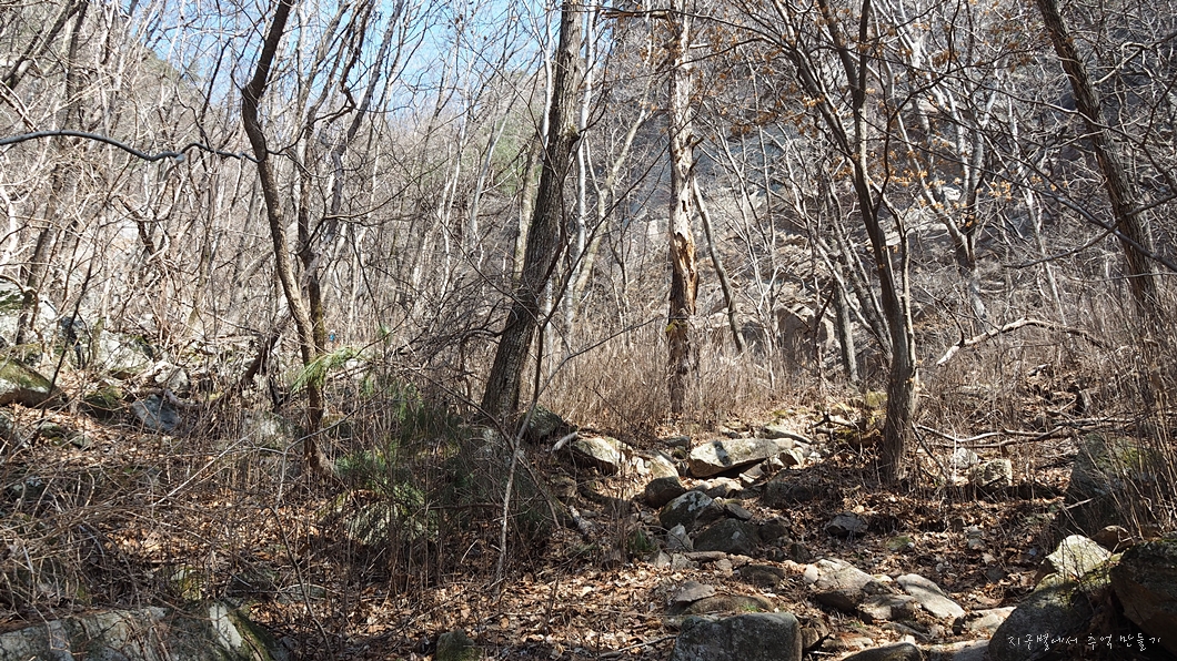 바로 위가 능선인데 단체로 오신 분들이 가득 자리하여 점심을 들고 있어 곧장 넘어갔습니다.