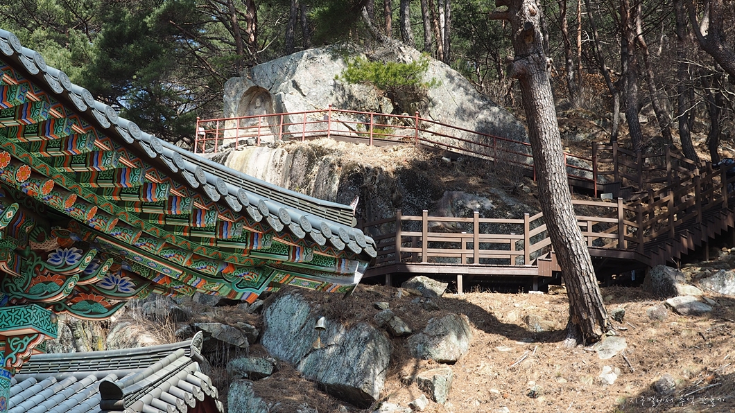 뒤편 산기슭에는 마애불이 조성이 되어 있어 지율군을 데리고 올라가 봤습니다.