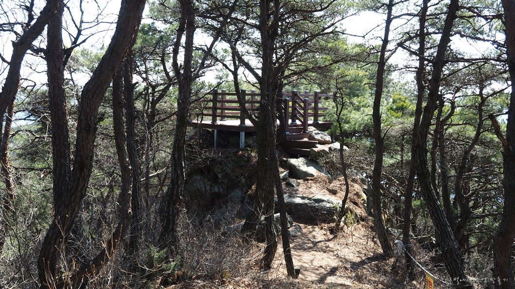 신선바위 바로 옆에 또 다른 암봉이 있는데 그곳에는 전망대가 설치되어 있는데 나무들이 많이 자라서 조망은 별로입니다.