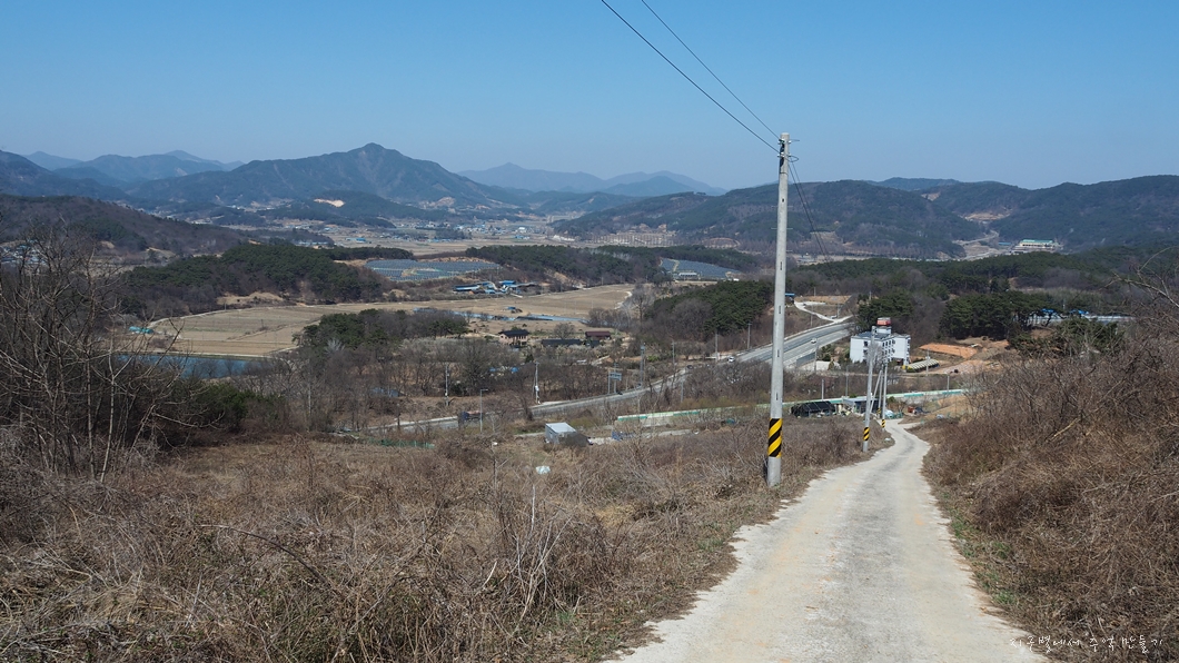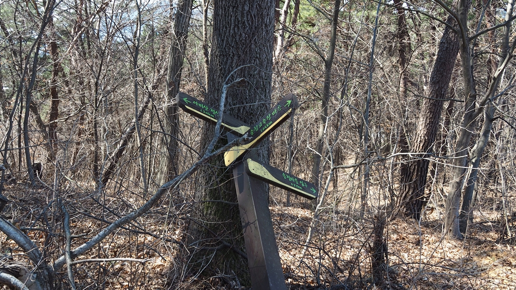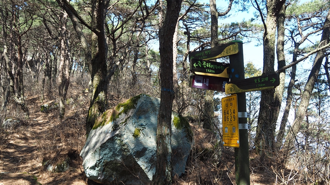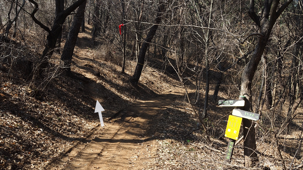 이정표가 있는 곳에서 좌측 산길로 오르면 됩니다.