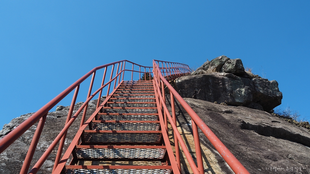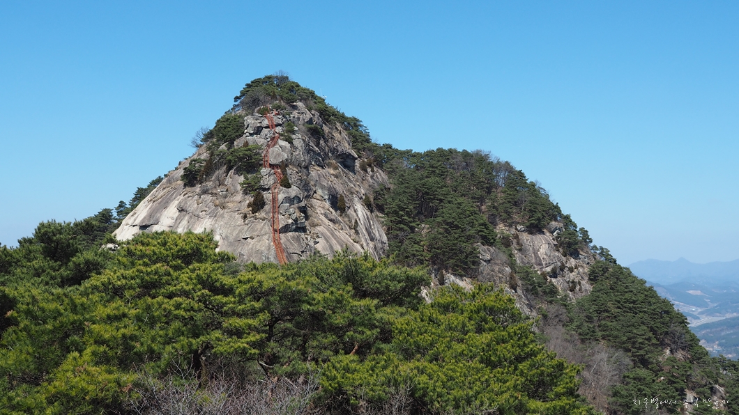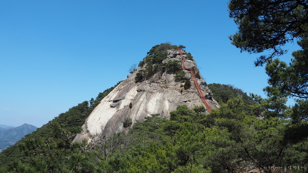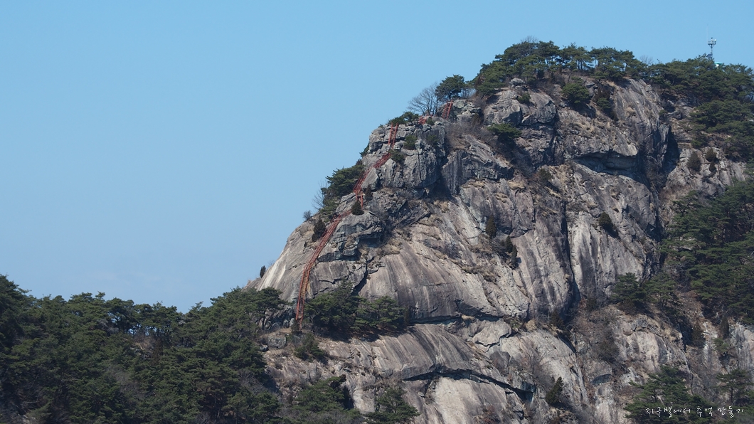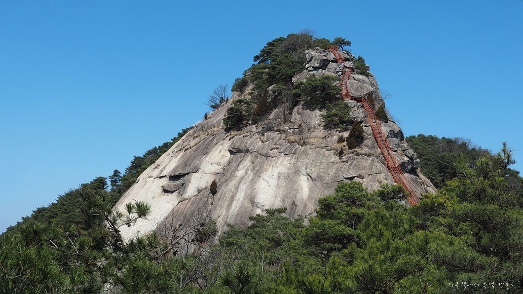 다만 정상의 봉우리가 인수봉을 닮은 암봉으로 되어 있고 그곳에는 하늘로 솟구치는 철사다리가 놓여 있는데 이것만 쫄지않고 오르면 조망을 한껏 즐기면서 소풍같은 산행을 할 수 있답니다.