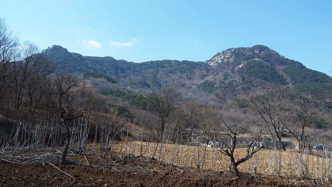 못토고개에서 올려다보는 배미산(좌)과 아미산(우)입니다.