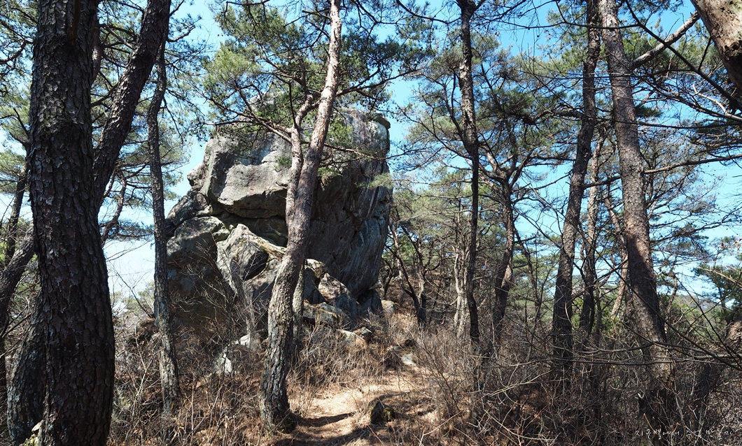 중간에 신선바위란 이름의 거대한 바위를 만나게 되는데 위에는 올라갈 수 없네요.
