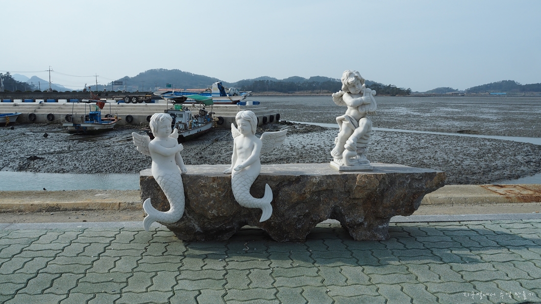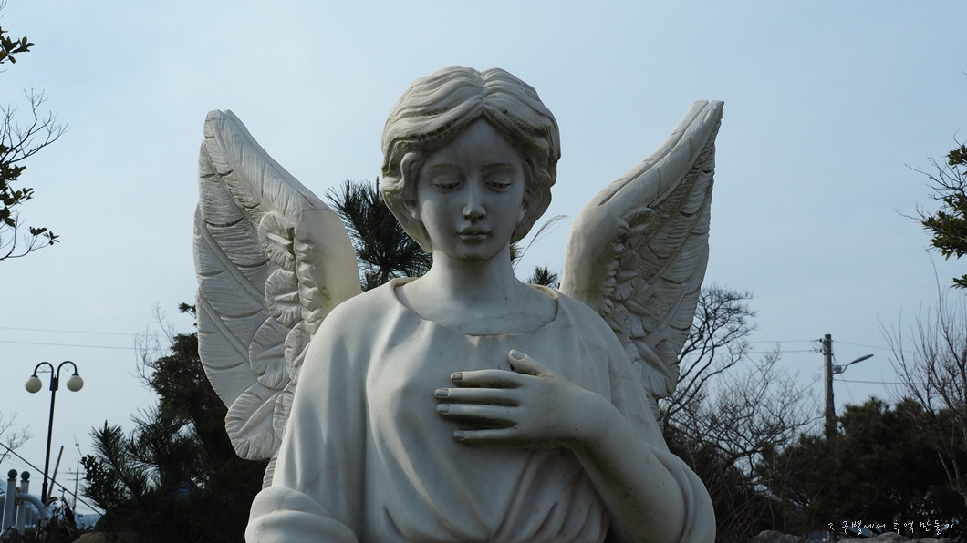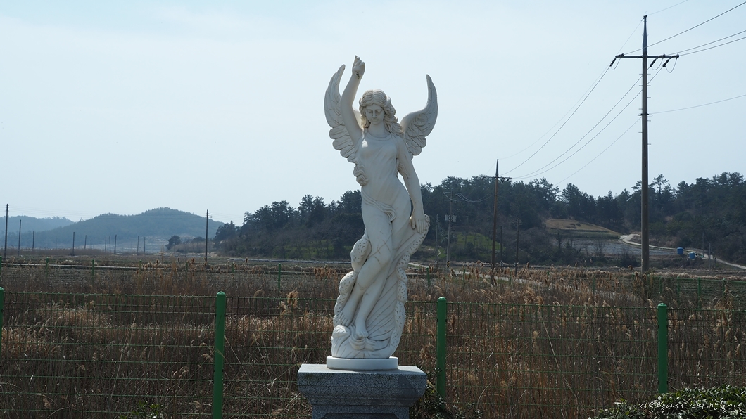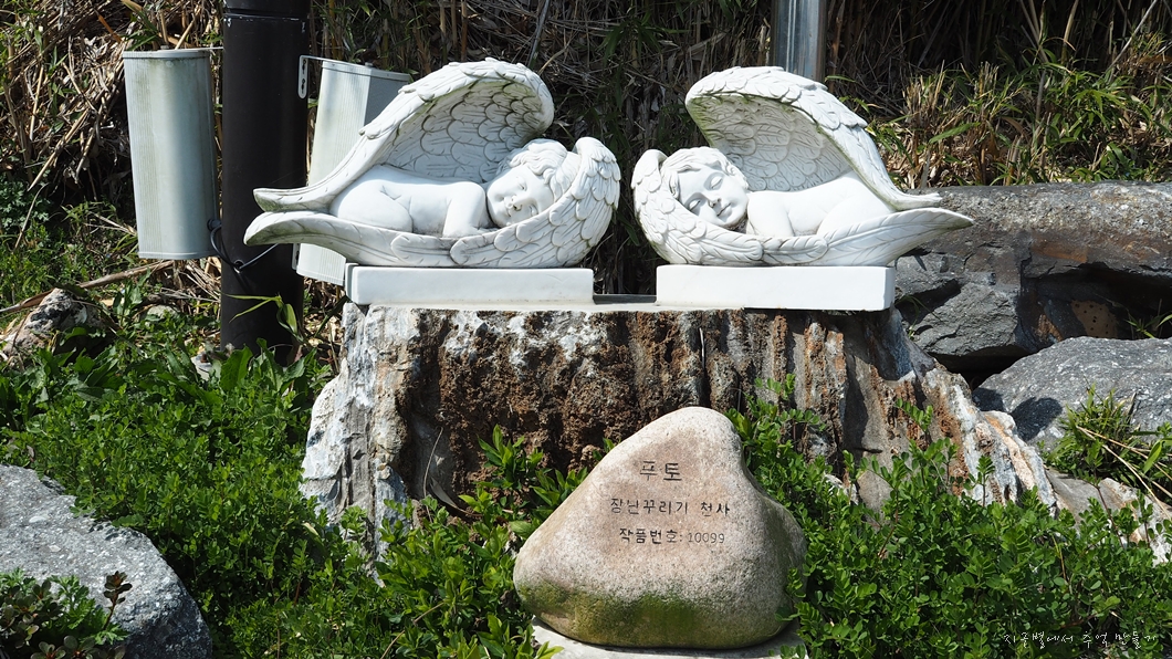 대통령 고향마을인 하의도 후광리로 가는 길목에는 대리석으로 만든 천사의 조각상들이 가득합니다.