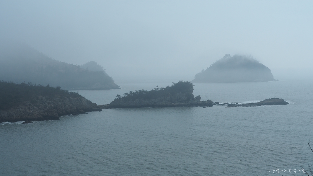 어떤곳은 말갛게 열려 있는데 어떤곳은 안개가 내려 있어 운치가 더하네요.