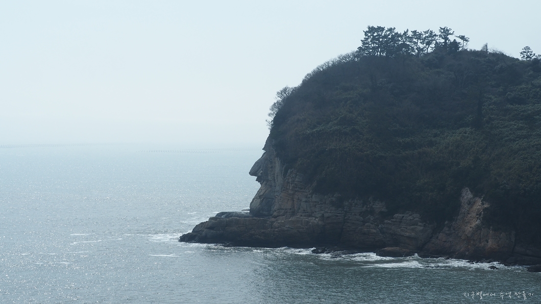 죽도라는 무인도인데 섬의 왼편이 사람의 얼굴 모양을 닮아 큰바위얼굴이라고 한답니다.