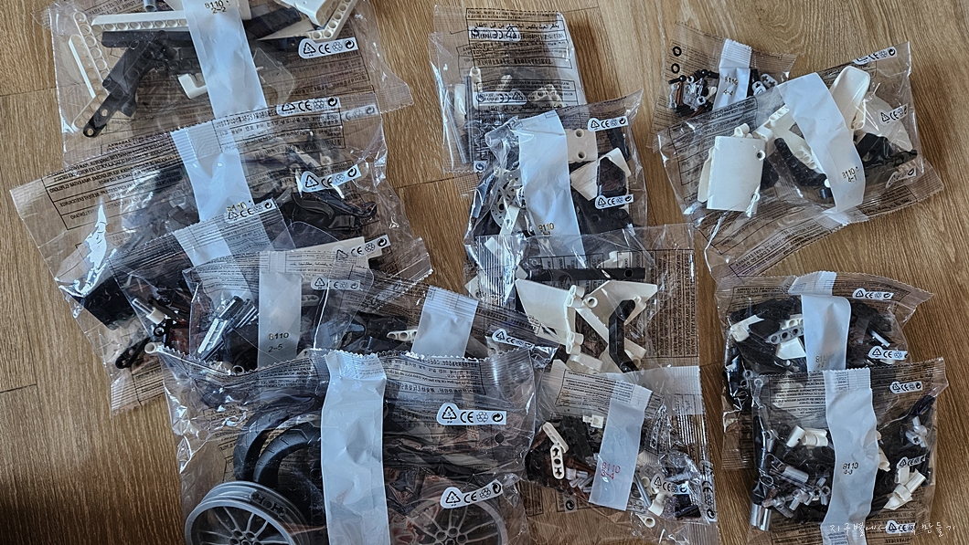 봉다리 안에는 그림으로 된 설명서 책자와 부품 봉지가 잔뜩 들어 있는데 왕창 다 풀어 헤치믄 안되고..