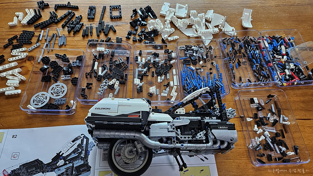 조립에 앞서 가장 먼저 해야 할 일은 번호대로 진열을 하여 같은 번호의 부품을 작은 통으로 옮겨 담는 것.