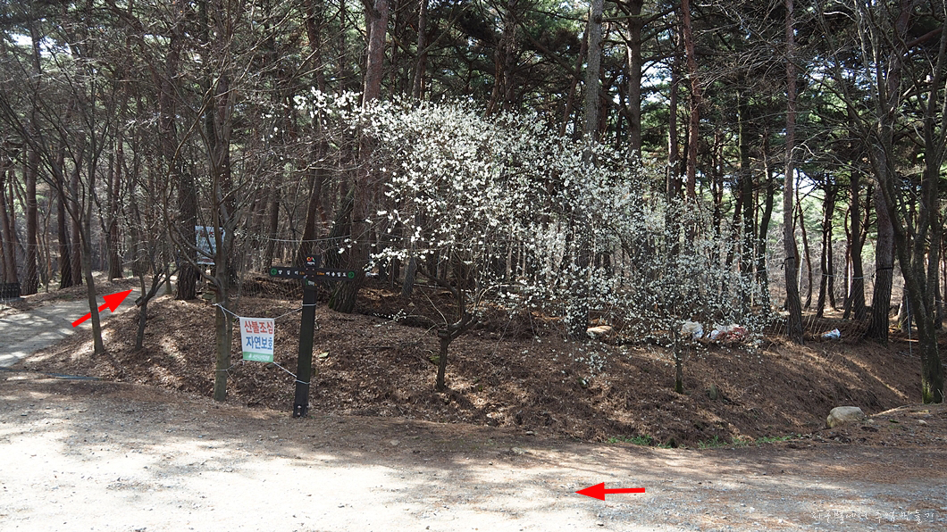 옆의 소나무 숲에는 뭔가를 심어 두었는지 출입을 못하게 금줄을 쳐 두었네요.