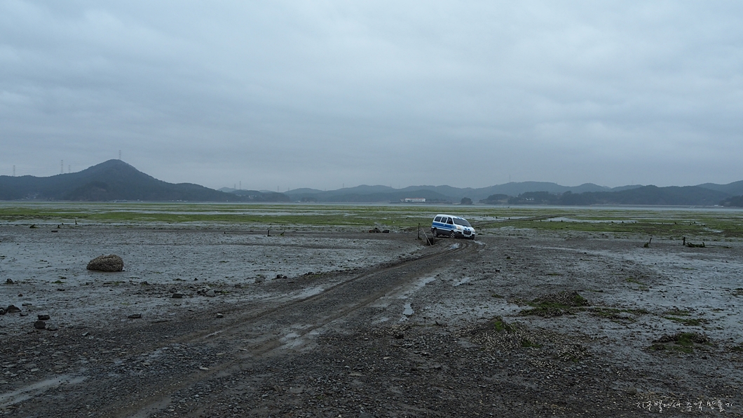 물이 빠지만 나타나는 바닷가 도로가 있길래 그곳으로 한참이나 차를 가지고 들어가 봤습니다.