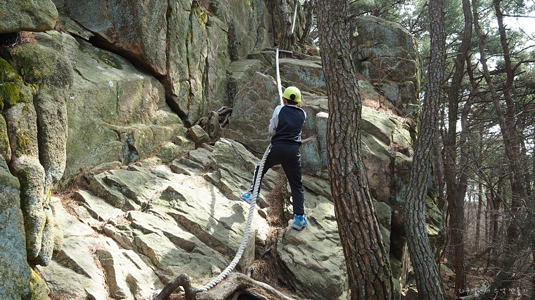 4봉에서 지율군 나무막대기로 홀로 무술놀이를 하길래 나는 나대로 작품(?) 하나 세워 놓고.