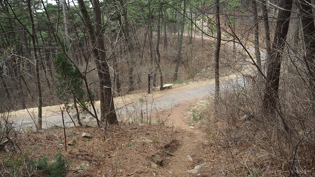 좌측으로 올랐다가 하산길에서는 우측 임도로 되돌아오게 됩니다.
