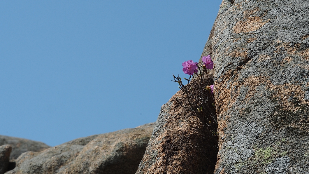 바위틈에서 꽃을 피우고 있는 진달래가 더욱 예쁘게 보여 집니다.