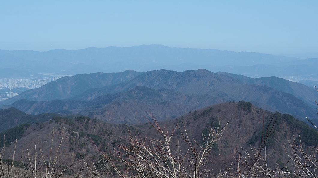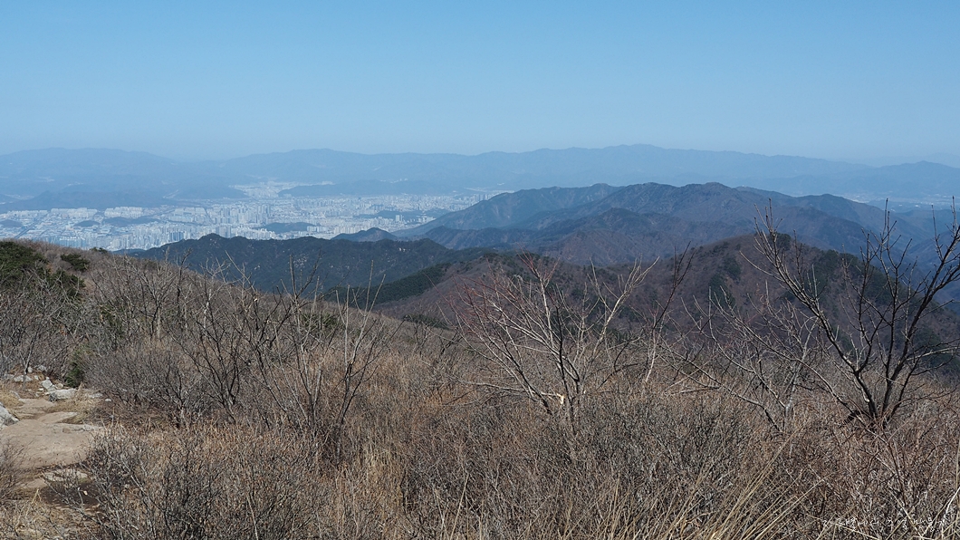 당겨서 본 팔공산과 앞산으로 이어지는 능선길.